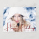 Este famoso cartão postal de Natal de Hollywood é perfeito para um modelo ou atriz que é a estrela do show. Feliz feriado escrito em um autógrafo de celebridades, rastreado manuscrito para um famoso visual fotográfico. Roteiro vermelho elegante sobre sua fotografia horizontal favorita.