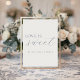Add a charming touch to your dessert bar or favor station! This "Love is Sweet" sign features elegant dusty blue calligraphy. It’s the perfect way to invite guests to enjoy a treat while maintaining your organic, elegant wedding theme. A part of the "Delicate blue floral wedding collection".