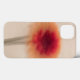 A soft, dreamy floral phone case featuring a blurred red flower on a warm neutral background.