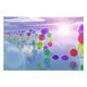 Uma paisagem de ficção científica 3D criou em Vue, mostrando uma rosa claro e um pôr do sol lavanda atrás de uma estrutura de esferas multicoloridas como átomos gigantes espiralando em um mar azul pálido.
