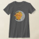 Sol vermelho e laranja com lua prateada e estrelas azuis - design de camisa.
