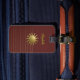 Sol de Ouro Radiante na Etiqueta de Bagagem Vermel