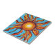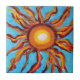 O sol pintado em um céu azul.