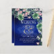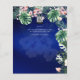 Tema moderno das folhas da ilha Real Azul tropical e das flores design. Os itens de coordenação com este design podem ser encontrados na coleção em anexo, que inclui convites para casamento, rsvp, salvar as datas, sinal de boas-vindas, adesivos, programas, menu, convites de chá de panela, janto de ensaio, convites para o conselho da nuestra, convites orçamentários e muito mais. Este tema de design é perfeito para o seu destino, praia, ilha tropical, casamento de verão. Design por marca registrada LeahG.