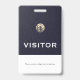 Acompanhe os visitantes e verifique a devolução de seus crachás com este crachá de visitante azul com um logotipo emblema metálico emblema de selo de ouro escovado que pode ser personalizado para sua marca com um banner de texto personalizável. O design é atraente e profissional, perfeito para qualquer negócio ou evento.