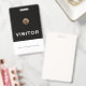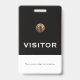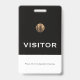 Acompanhe os visitantes e verifique a devolução de seus crachás com este crachá de visitante preto e branco com um logotipo emblema de selo metálico escovado de cobre que pode ser personalizado para sua marca com uma faixa de texto personalizável. O design é atraente e profissional, perfeito para qualquer negócio ou evento.