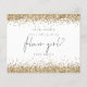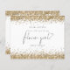 Solicitação de Rapariga de Flor de Script Dourado Glitter. Um alternativo de 4,5" x 5,6". Disponível em um STOCK CARD CARD SEMI GLOSS de 110 lb, que é a opção padrão (mais espesso para convites) A Flower Girl está em um script de conjunto de na moda está no centro. Uma borda de falso brilho em ouro está no topo e no fundo de cada lado.