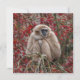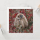 Uma gibão de mãos brancas se percorre graciosamente em uma árvore enfeitada com folhas vermelhas vibrantes. Com uma expressão serena, ela se espanta à distância, sua forma ágil se misturando harmoniosamente ao meio natural