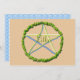 Um ápice amarelo-sol e azul-céu é cercado por um povoado de árvores de verão neste simples design Litha, que é uma das minhas tentativas de criar pentáculos representando cada um dos oito feriados Wiccan (sabbets)