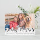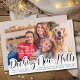 Modern Decking New Halls, carta à mão, cartão de solteiro. O modelo de foto está configurado para que você adicione uma foto horizontal e você também pode adicionar seu novo endereço e saudação personalizada. Design de tipografia mínima com legal inscrição a preto e branco, que fica como uma cobertura de texto na parte inferior da sua imagem. Por favor, procure na minha loja o texto festivo do alternativo e as cores no verso (ou clique em "personalizar mais" para mudar a cor de fundo você mesmo).