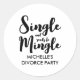 Solteiro e pronto para misturar adesivos e vedantes do partido de divórcio. Design de tipografia de letras negras e brancas. Texto personalizado com na moda para mulheres divorciadas e solteiros. Personalize com seus próprios nomes. Acessórios divertidos para meninas fim de semana, viagem, reunião, reunião, noite de encontro etc.
