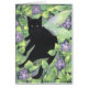 Nestled nas sombras de algumas videiras roxas bonitas da pervinca um gato feericamente carvão-preto, estabelecendo-se dentro para uma sesta da tarde. Arte por Carmen Medlin.