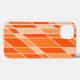 Esta capa de telefone tem um design geométrico em tons de laranja e branco. Divertido e brilhante.
