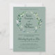 Este bonito "Shades de Verde - Convite para Casamento" foi projetado com uma coroa de folhas verdes claras e escuras, e texto de roteiro em branco e verde. Um convite suave e delicado com cartões de coleção de casamento. para personalizar, simplesmente insira o seu texto na nossa modelo fácil, passo a passo. Aproveite!