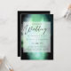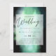 Convite de casamento moderno com campos de modelo de texto em ambos os lados e uma nuvem de cor azul esverdeada.