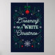 Um Poster Elegante e Moderno apresenta um fundo de neve, flocos de neve, sinos de trenó, fita, ornamentação florescente e tema de garagem botânica de galhos de pinheiro para representar o melhor dos feriados. É inspirado pelas canções de Natal do passado natalício da letra "Dreaming of a White Christmas" e é também uma forma excelente de expressar o Holiday Cheer por aqueles que você gosta. Criado com uma letra e ilustração desenhadas para aqueles que adoram Estilos Únicos e Novidade! Desenhado por Katrina Sutton.