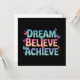 Enfermeira uma mentalidade mais brilhante com este cartão eloquente de "Sonho, Acredite, Alcance", com borboletas brancas e coloridas e cartazes motivacionais. Este trabalho de arte alegre encoraja o espírito, o amor próprio e o crescimento pessoal, fazer-o como um presente perfeito ou lembrete pessoal para permanecer positivo e espalhar boas vibrações. Esta design inspirada na borboleta traz beleza e encorajamento à vida cotidiana.