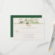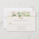 Folhas verdes, eucalipto e botões dourados em um fundo marfim completam os detalhes do RSVP. O verso do cartão é verde escuro. As caixas de texto são fáceis de personalizar com suas próprias informações. Uma mistura de fontes modernas e caligráficas torna este um cartão de resposta de casamento perfeito.