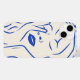 Essa trabalho de arte minimalista captura um momento sereno de uma mulher perdida no pensamento, cercada por delicadas flores azuis. As linhas suaves e os calmantes evocam um sentido de paz e tranquilidade, perfeito para um espaço reflexivo e calmante.