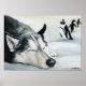 Esta impressão de poster apresenta uma reprodução da minha pintura original de óleo do "Sonho Penquin do Huskey Siberiano".