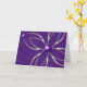 Contra um fundo de abstrato caleidoscópio de fractais de apófise macia é uma flor de filigre prateado de quatro pétalas, com uma ametista espumante no centro e pequenas pedras redondas nos cantos. Uma ilustração usando o roxo como um símbolo de realeza e riqueza.