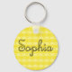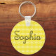 Chaveiro bonitinho em pequenos corações amarelos com o nome Sophia impresso.
