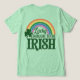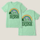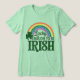 Esta camiseta verde apresenta um arco-íris, as palavras Lucky To Be Irish e um shamrock verde no lado esquerdo. A imagem está na frente e atrás da camiseta.