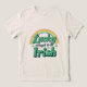 Letra bonita no estilo retrô que diz "Sortudo o suficiente para ser irlandês" ao lado de um arco-íris de estilo antigo e uma pedra de xamelo correspondente. Perfeito por vestir na Rua.