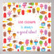 Sorvete É Sempre Uma Boa Ideia! A citação está rodeada de uma variedade de sorvetes e picolé em várias cores, toques, sabores e tipos. Decorado com muitas aspersas arco-íris!