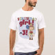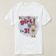 Uma adorável menina de cabelo preto e um vestido vermelho e branco, um cupcake, balões, e texto que diz: "Garota de Aniversário I'm 3!" em Camisetas de aniversário de 3 anos, fatos de corpo, canecas, ímanes, cartões, adesivos, sacos de presente de aniversário, e muito mais!