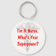 Sou enfermeira, qual é o seu chaveiro de superpotência com símbolo caduceus. Texto personalizável e cores. Engraçado ideia de presente para a semana de enfermeira, formando de enfermagem ou enfermeiras registradas.