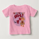 Uma menina adorável de cabelo louro, chapéu de festa, cupcake com uma vela, e balão vermelho, texto que diz "Garota de aniversário I'm 1!" em Camisetas de aniversário, jaquetas, canecas, ímanes, cartões, adesivos, sacos de tote de aniversário, e muito mais!