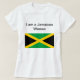 Camiseta branca mostrando as palavras "Eu sou uma garota jamaicana" e uma bandeira jamaicana