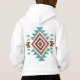 A Southwestern-style geometric pattern featuring layered diamond shapes in warm terracotta, deep brown, and cool turquoise tones. The distressed texture gives it a vintage feel, while the symmetrical layout adds a clean and modern touch.