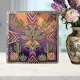 Embrace the beauty of the desert with this stunning Art Deco-inspired ceramic tile. Featuring a captivating mandala design that intertwines stylized desert flora like cacti and lotus blooms with geometric patterns, this tile is a true work of art. The vibrant color palette of soft peaches, deep purples, and cool teals, accented with shimmering gold and silver details, evokes a sense of retro glamour and Southwestern charm. Perfect for adding a unique focal point to any space, from kitchens and bathrooms to living areas, this tile brings a touch of elegance and artistic flair to your home decor. Its intricate details and rich colors make it a conversation starter and a timeless decorative piece.