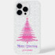 Este elegante, único, moderno, na moda, desenhado à mão, design apresenta uma árvore de Natal com detalhes cintilantes e intrincados em cor rosa sobre fundo branco. O design também apresenta seu nome personalizado em topografia de na moda. Este item é perfeito para a época festiva e pode ser um excelente presente para seus amigos e família.