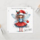 Celebrate the season with a festive and imaginative design featuring a playful Christmas fairy holding a red ornament. Dressed in a glittering red skirt, striped stockings, and a Santa hat adorned with holly, she brings joyful charm to your holiday message. Her delicate blue wings and curious expression add a touch of magic to the clean white background, where “MERRY CHRISTMAS” appears in a cheerful handwritten font. On the reverse side, a heartfelt greeting is included with the sender’s name, offering a warm and personal message perfect for sharing seasonal sparkle and delight. Ideal for those who love quirky elegance and fairy-inspired holiday cheer.