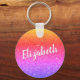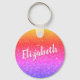 Faux sparkly rainbow personalizou a chaveiro por ela apresentando um fundo arco-íris parecido com muitas estrelas brilhantes e um nome personalizado aflorado e branco Elizabeth que você pode personalizar e mudar para seu nome ou qualquer nome personalizado que você queira usar.