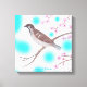 O desenho a lápis colorido de um pardal sentado numa árvore do Blossom de Cereja, com um céu abstrato e nuvens de fundo, é impresso em impressões de canvas.