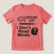 Make a bold statement with this “Speak Up – I Don’t Read Minds” design, featuring a speaker icon, volume bar, and silhouette head with a question mark. Perfect for teachers, customer service workers, introverts, extroverts, and anyone who wants to encourage clear communication with a touch of humor.