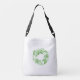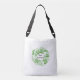 Um saco bonito com uma coroa floral verde-hortelã moderna em tema monocromático com uma variedade de flores. Adicionar nome ou outra mensagem.
