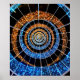 Bring a touch of enchantment to your space with this mesmerizing spiral light poster, featuring golden and blue twinkle lights captured from inside a giant Christmas tree.