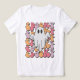 Esta divertida e festiva design do Dia das Bruxas apresenta uma ilustração fantasma clássica frente e centro, cercada pela palavra "Spooky" repetida em uma fonte ousada e espumante. O texto é colocado em cores vibrantes e retrorinspiradas, como pintas moles, púrpuras e laranjas, criando um contraste lúdico contra a simples figura branca do fantasma. Os olhos negros sem expressão do fantasma adicionam um toque de encanto estranho, enquanto a tipografia ondulada e empilhada dá à design um ranho, uma sensação nostálgica.