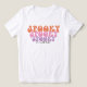 Esta design mostra a frase "Spooky Spooky Vibes" organizada em cascata, em formato empilhado. A palavra "Spooky" é repetida três vezes, cada uma com uma cor diferente — começando com uma laranja vibrante, passando para um rosa macio e terminando com um roxo pastel. As letras são grossas e arredondadas, dando uma aparência divertida e espumante que contrasta com o tema assustador. A palavra "vibrações" é escrita abaixo em uma fonte delicada, preta e cursiva, acrescentando um toque de na moda ao design geral. Pequenos sotaques rodeiam o texto, melhorando o humor caprichoso e festivo. Esta design é perfeita para uma divertida e leve tomada do Dia das Bruxas.