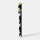featured on a black background are pretty yellow and white Frangipani flowers in a pattern,