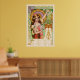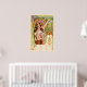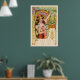 Este elegante cartão postal Art Nouveau anuncia a chegada da primavera. É uma exibição lúcida de cor, padrões e flores. Uma jovem toca um galho floreiro em meio a suportes estilizados, bordas e pingentes. A imagem original foi combinada com um plano de fundo padronizado para complementar as cores e o design do cartão postal da safra. Uma área para texto permite personalização.