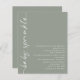 Sprinkle do Chá de fraldas de Sage de Script Rotativo no Orçamento. Um preço orçamentário menor de 4,5 x 5,6" em um alternativo de 110 gsm de espessura semelhante a um cartão postal. Há um por folha. Estilo contemporâneo com o Baby Sprinkle rotacionado e à esquerda e personalize facilmente o resto do texto para seus próprios detalhes. Você pode alterar as cores do texto e do plano de fundo se desejar, por meio da opção editar mais.