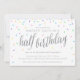 Convites para meia Festa de aniversário de borrifada. Com bonito borrachas do arco-íris caindo como um confete colorido ao redor do roteiro de caligrafia "meia-aniversário". Para mais ideias de festas de aspersão, veja a nossa Coleção de Partido Sprinkle. Tema perfeito para amantes de aspersor!