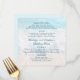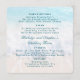 Beach wedding reception menu. Square with rounded corners and dark teal blue text to customize in sections. The names of the bride and groom are in the center along with "wedding menu" text. List hors d'oeuvres, salad / starters, entrées, and dessert beneath each heading. The sample wording in each section has three lines, or use only two. Blue ocean water, white foam, and beach sand is the background. Also choose the round shape as long as wording is not near the edges.