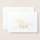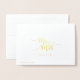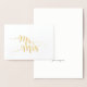 O Cartão de Saudação de Folha de Ouro gravado é perfeito para qualquer convite de casamento, salvar a data, o anúncio, o noivado de casamento ou o obrigado. As palavras "Sr. & Sra." são folhas impressas/gravadas no papel e são suaves ao toque. Personalize o texto interior com a mensagem desejada ou remova-o para ter vazio e para poder escrever a sua própria mensagem.